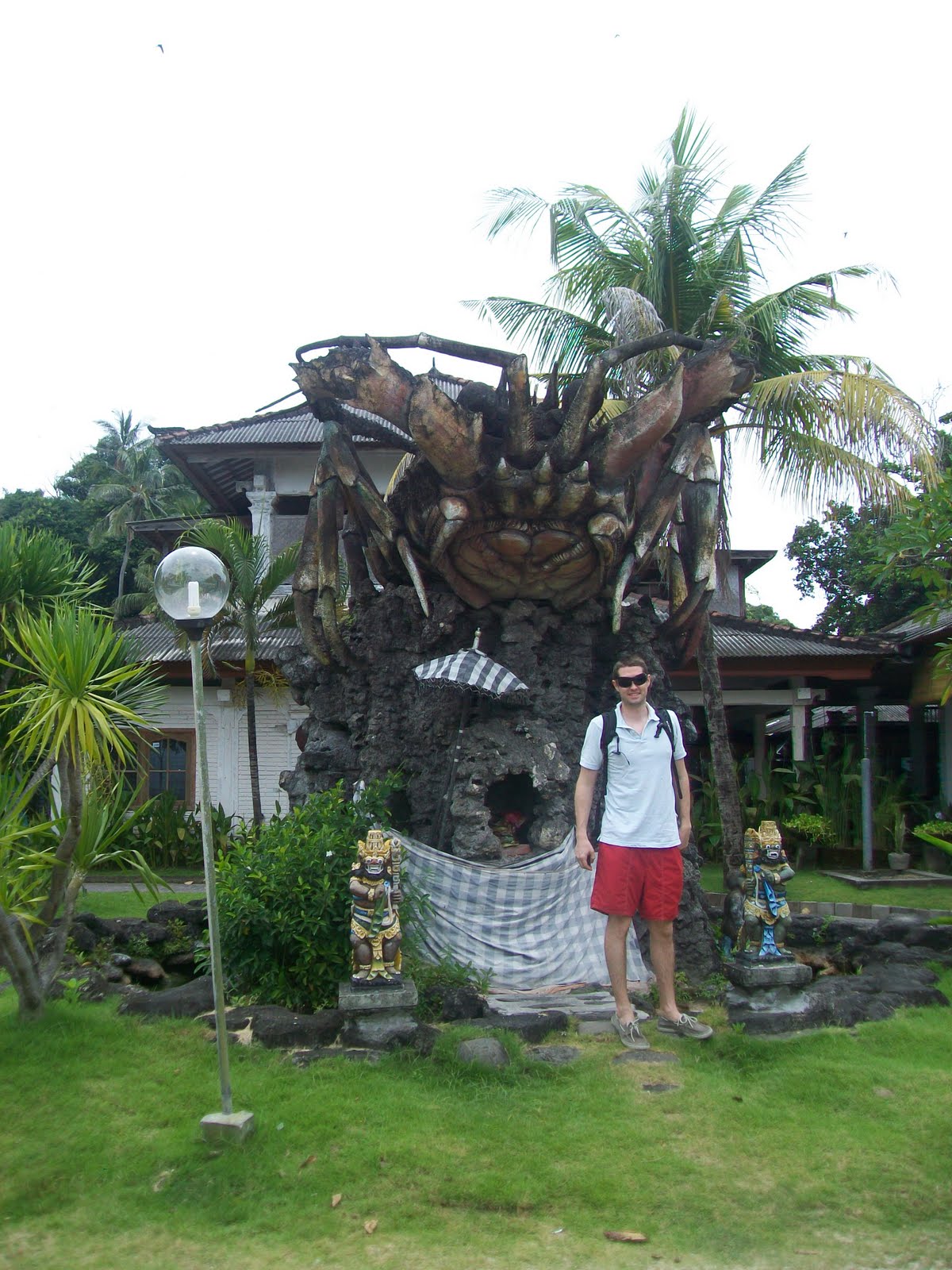 Most days we walked down to the beach and ate at one of the seemingly identical restaurants that line the strip. The food wasn't super cheap, but reasonable. Neither of us could find the one thing we were looking for- I for something authentic (I still don't think I know what sambal is even though I know I had it), and Sami for something that wouldn't make her puke. At least the scenery was incredible. There was a big wedding chapel along the strip we walked each day and it featured a giant glass house in the shape of an engagement diamond. It was incredibly tacky and out of place, but then again, the giant lobster stone carving didn't seem completely natural either.
